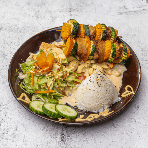 Erdnusssauce mit Gemüse und einer Zutat nach Wahl